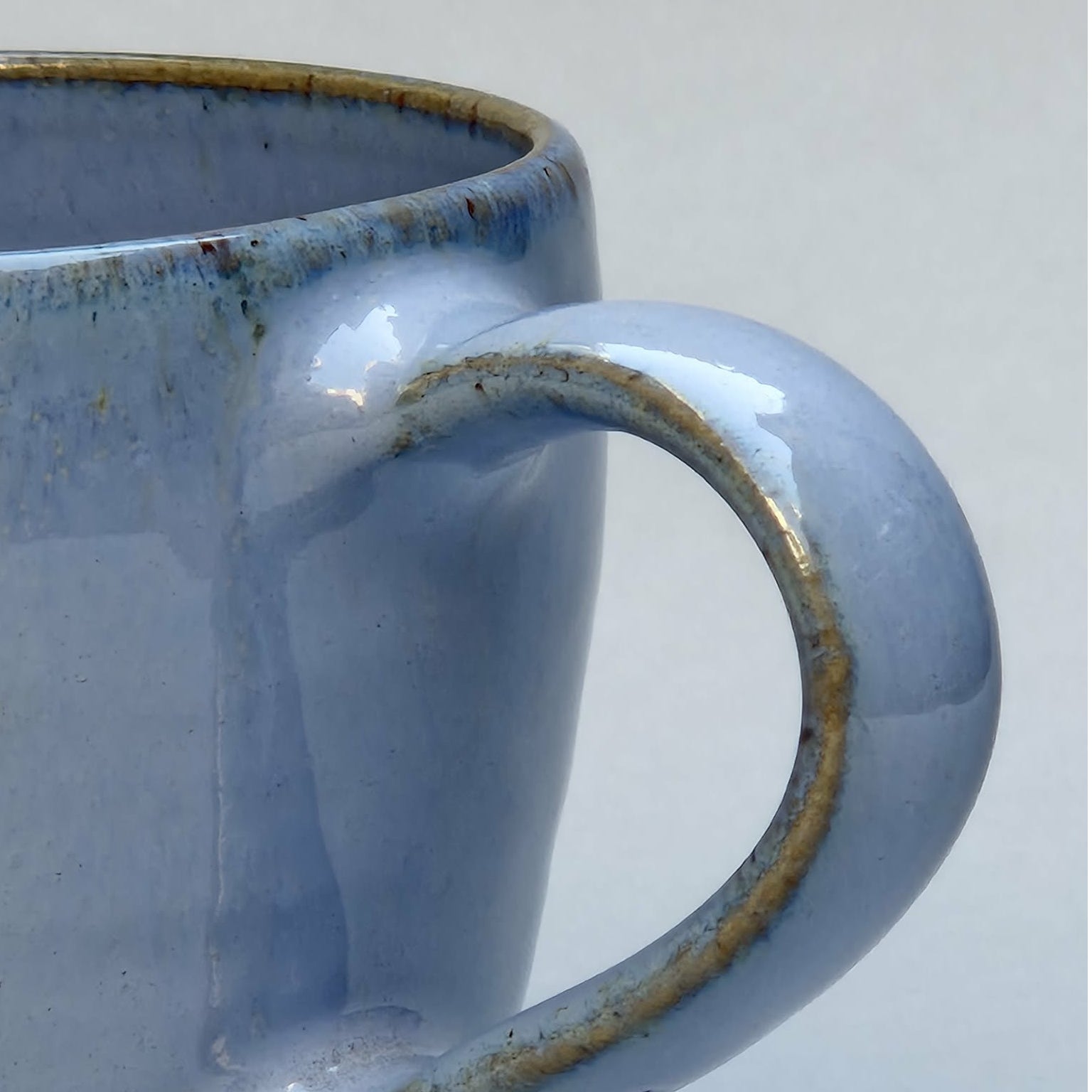 Smukt blå kop drejet i stentøjsler med små lavapletter på mit værksted på Vesterbro.